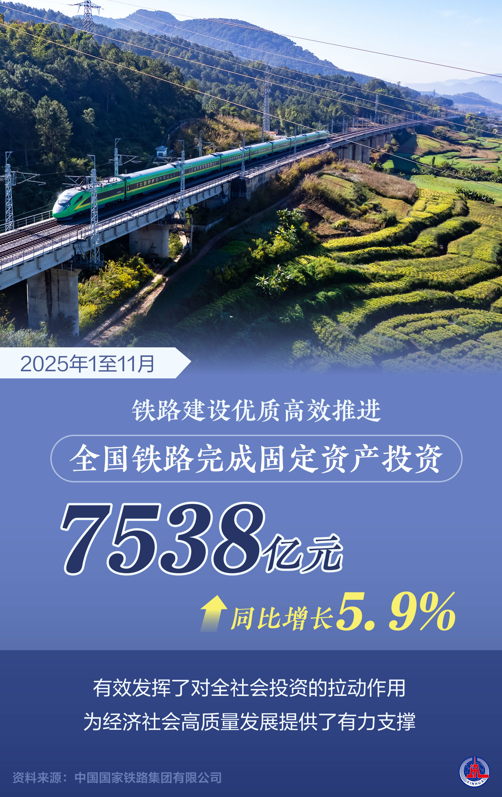 2025年1至11月全国铁路完成固定资产投资7538亿元