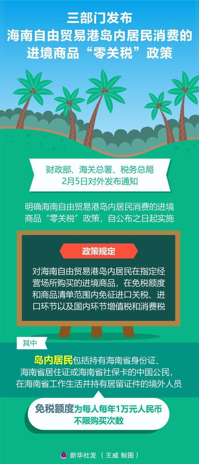 三部门发布海南自由贸易港岛内居民消费的进境商品“零关税”政策